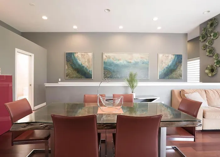 Self-catering facilities at Architectural Gem La Jolla Oceanview Surf And Golf Villa include an equipped kitchenette plus a refrigerator, a toaster, and kitchenware. Guests have the option of dining at La Jolla Playhouse, which is 6 minutes' walk away. The 3-bathroom villa is located 20 minutes' drive from San Diego International airport and 23 km from Coaster Santa Fe train station. A hot tub are also offered for ultimate relaxation.